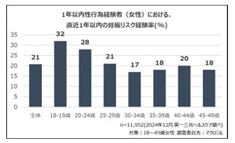 第一三共ヘルスケアの調査によると、1年以内に性行為の経験がある女性(18〜49歳)約1,025万人のうち、「予期せぬ妊娠のリスク」を経験した人は約210万人。